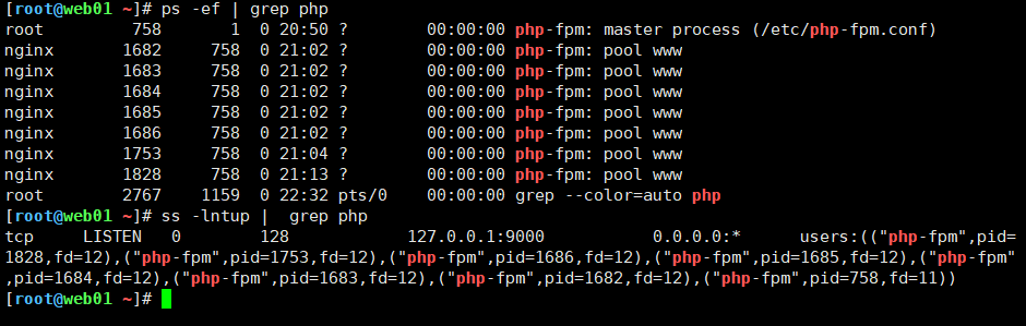 - vim /etc/php-fpm.d/www.conf 修改php配置文件的进程用户更改为nginx