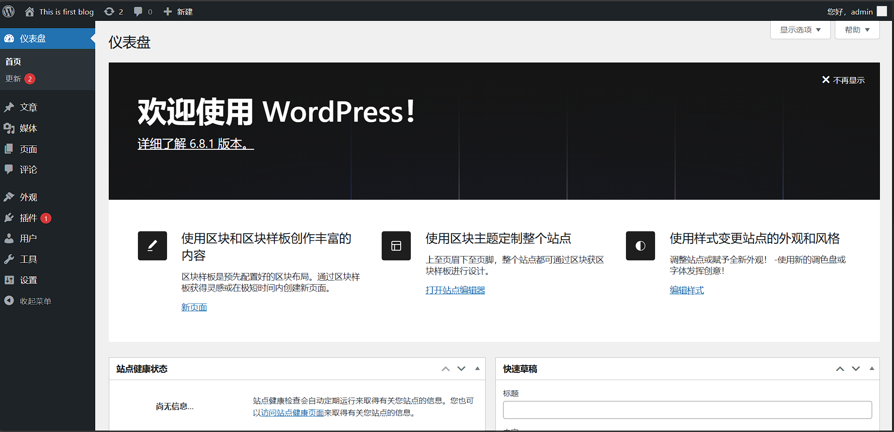 - 访问站点blog.zhangmianxin.cn以及后台blog.zhangmainxin.cn/wp-admin/