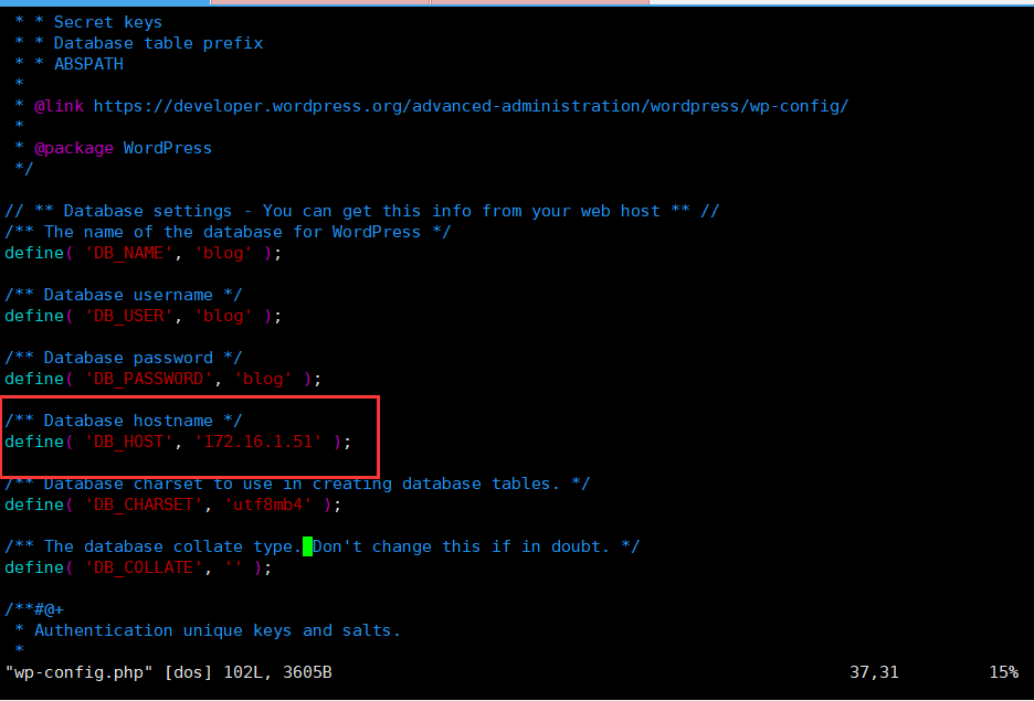 [root@web01 /app/code/blog]# grep DB_ wp-config.php
