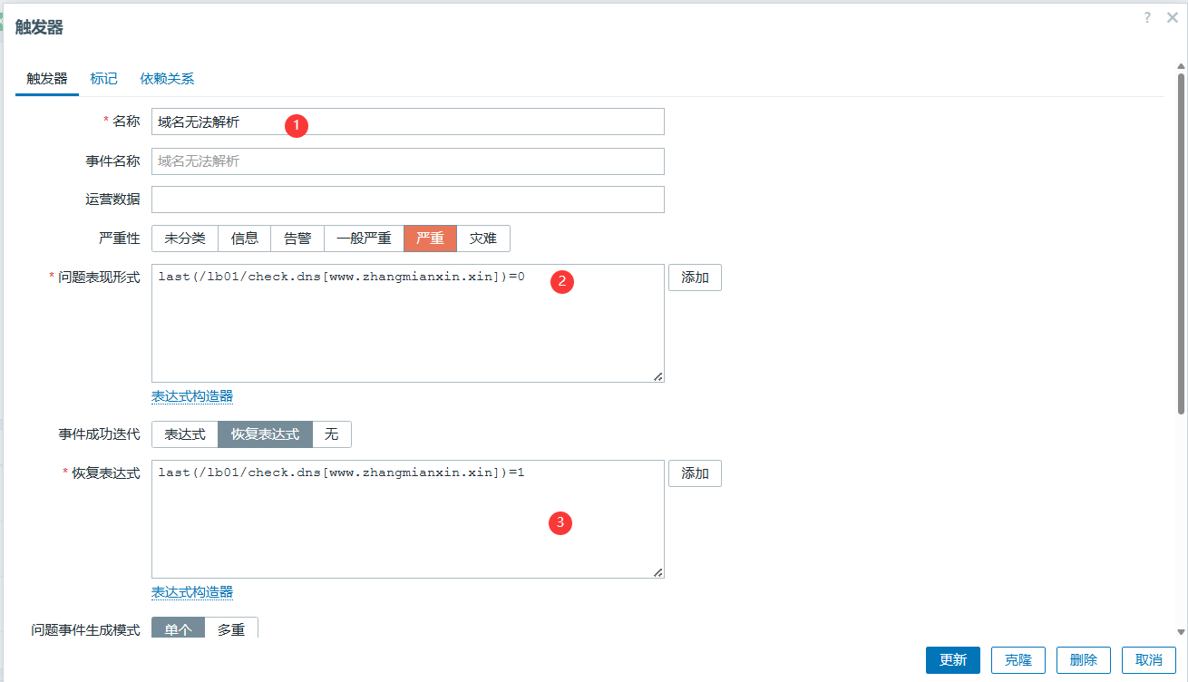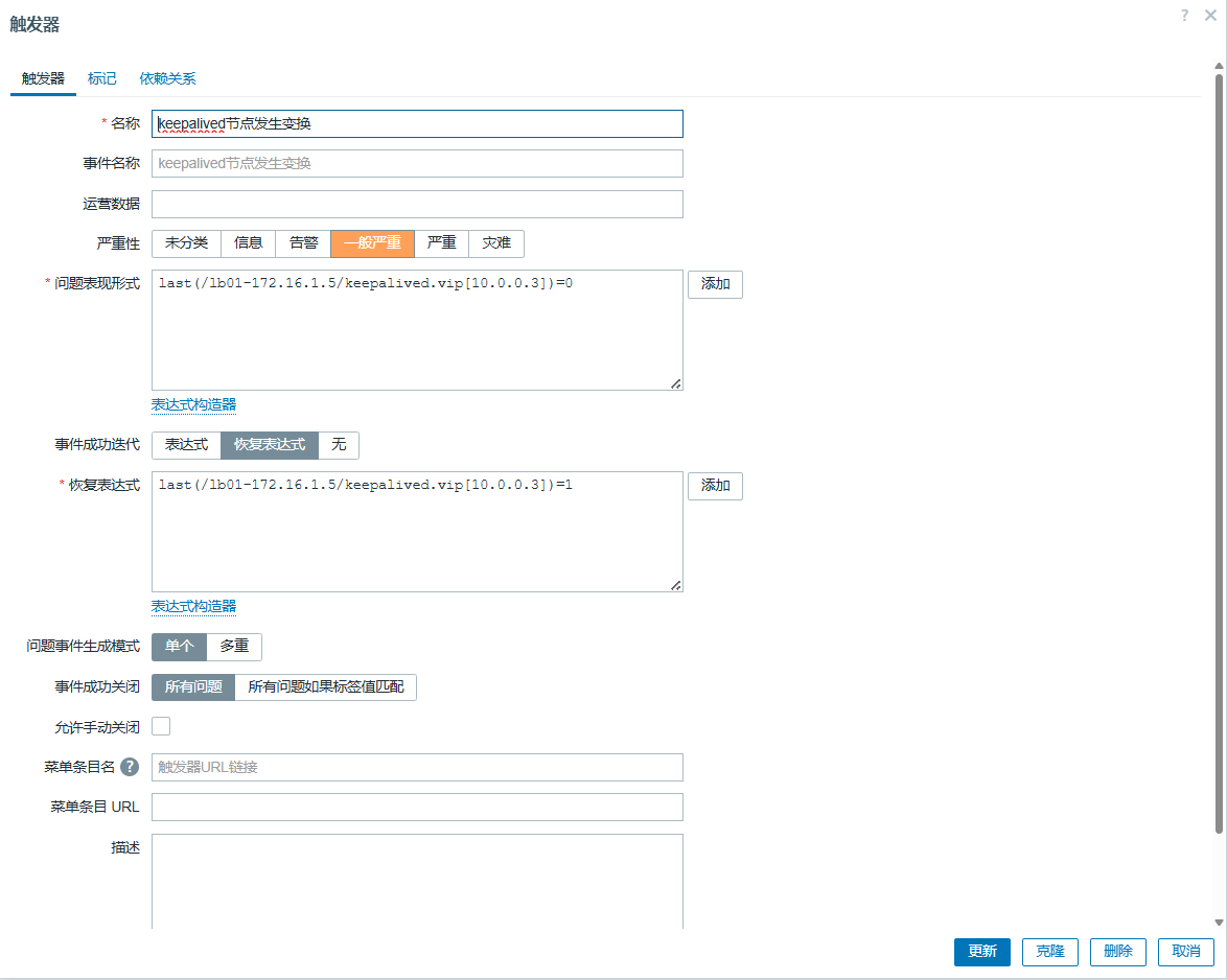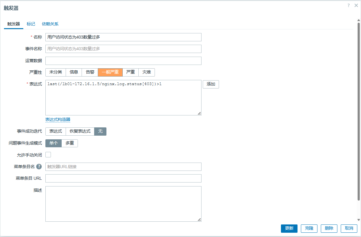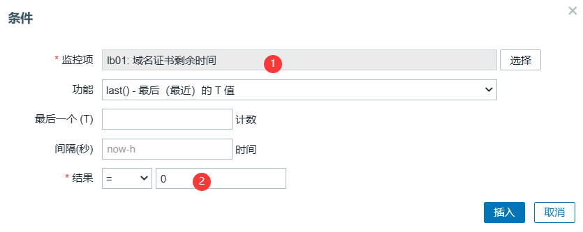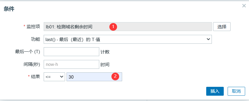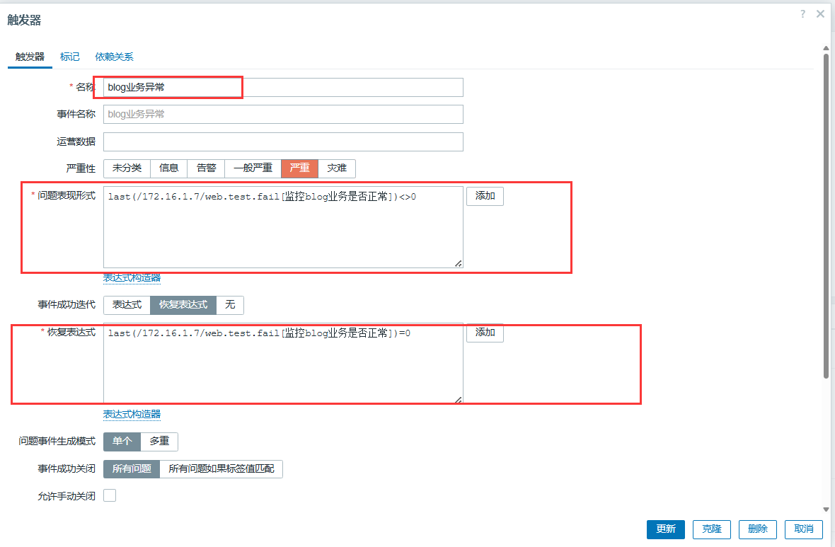 last(/web01-172.16.1.7/web.test.fail[监控blog业务是否正常])<>0