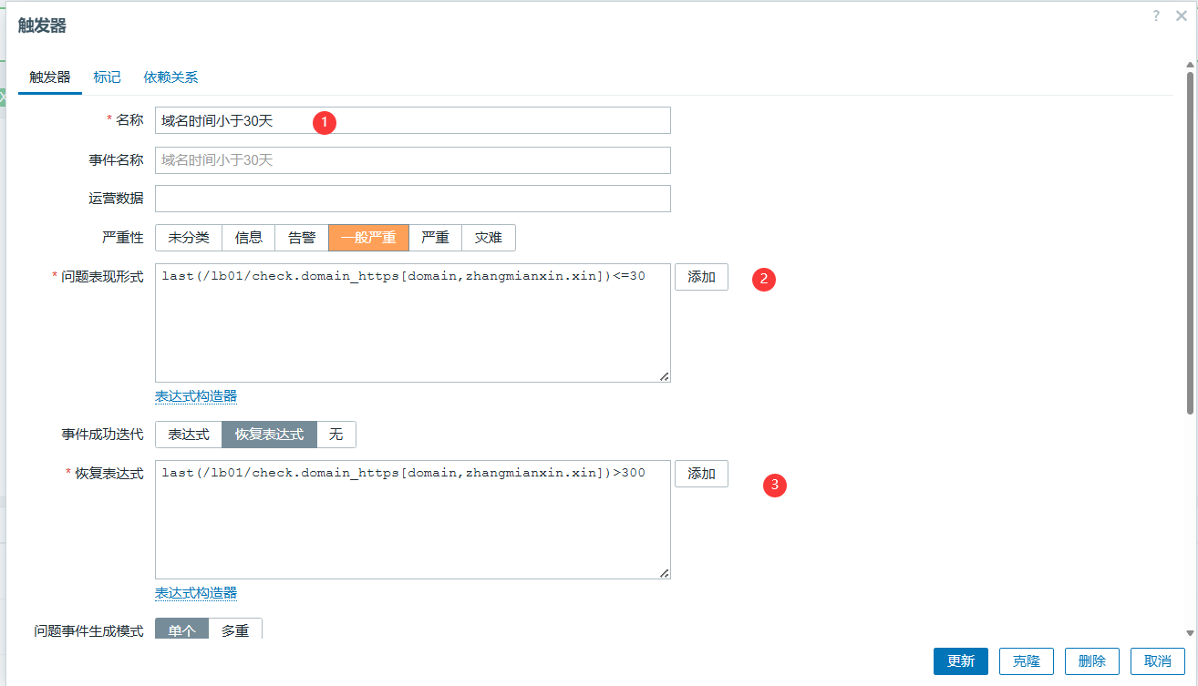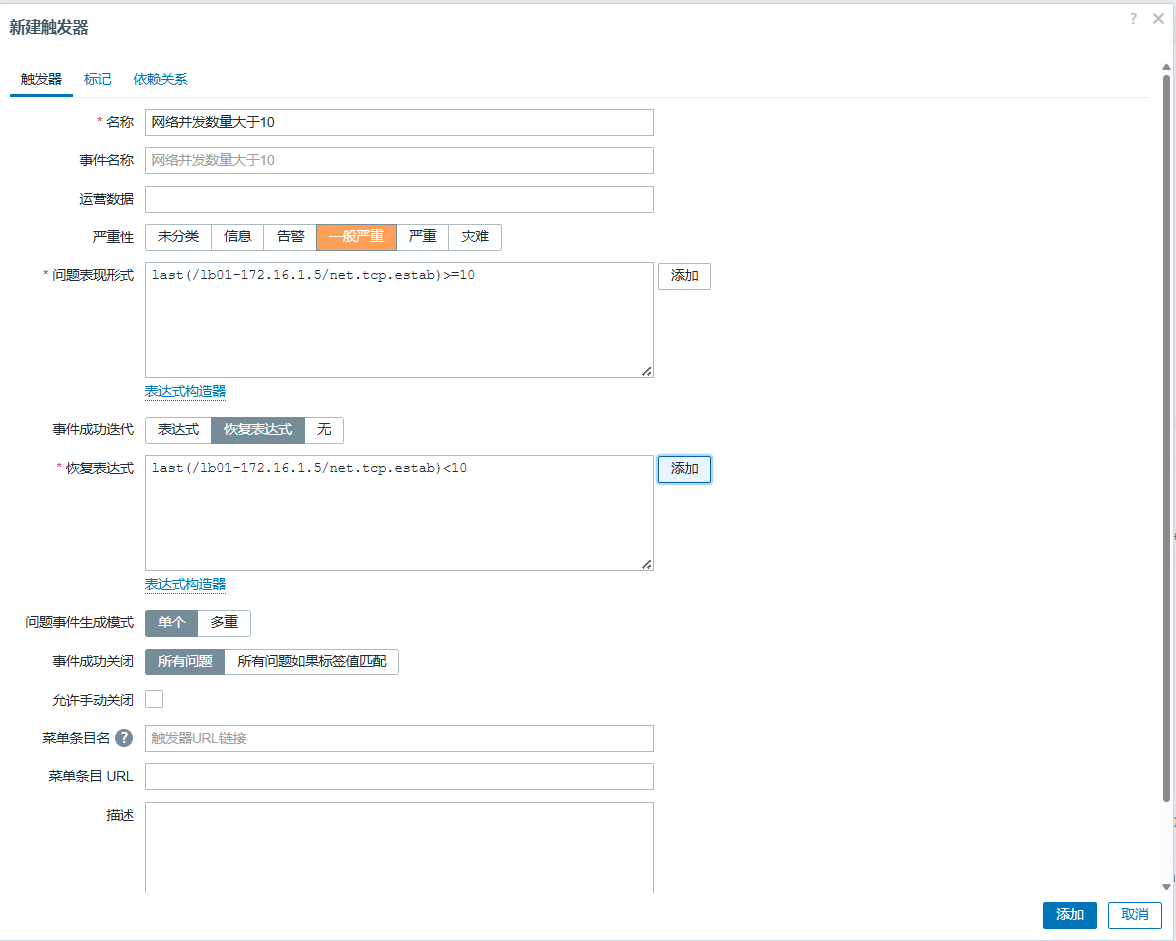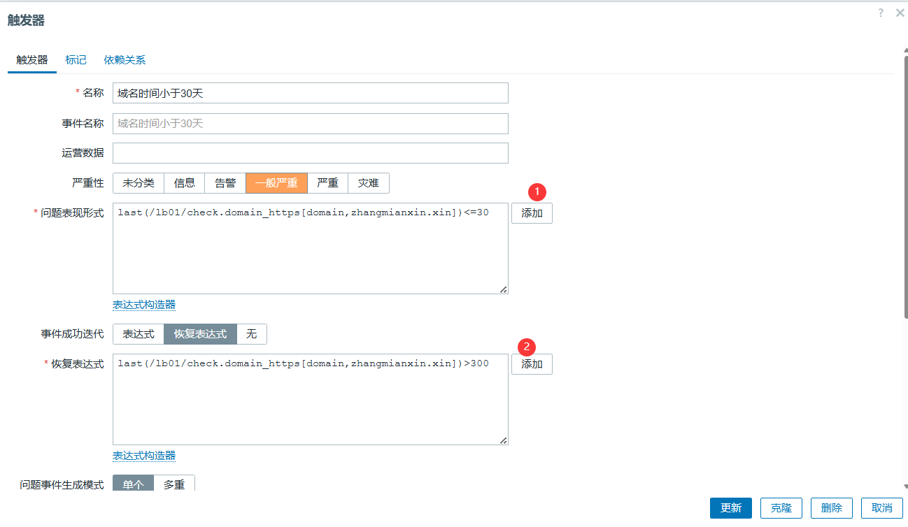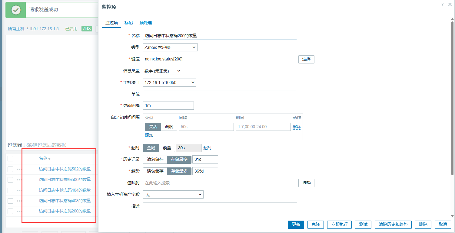 last(/web01-172.16.1.7/web.test.fail[监控blog业务是否正常])<>0