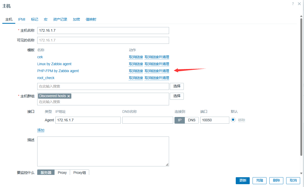 - 主机关联模板